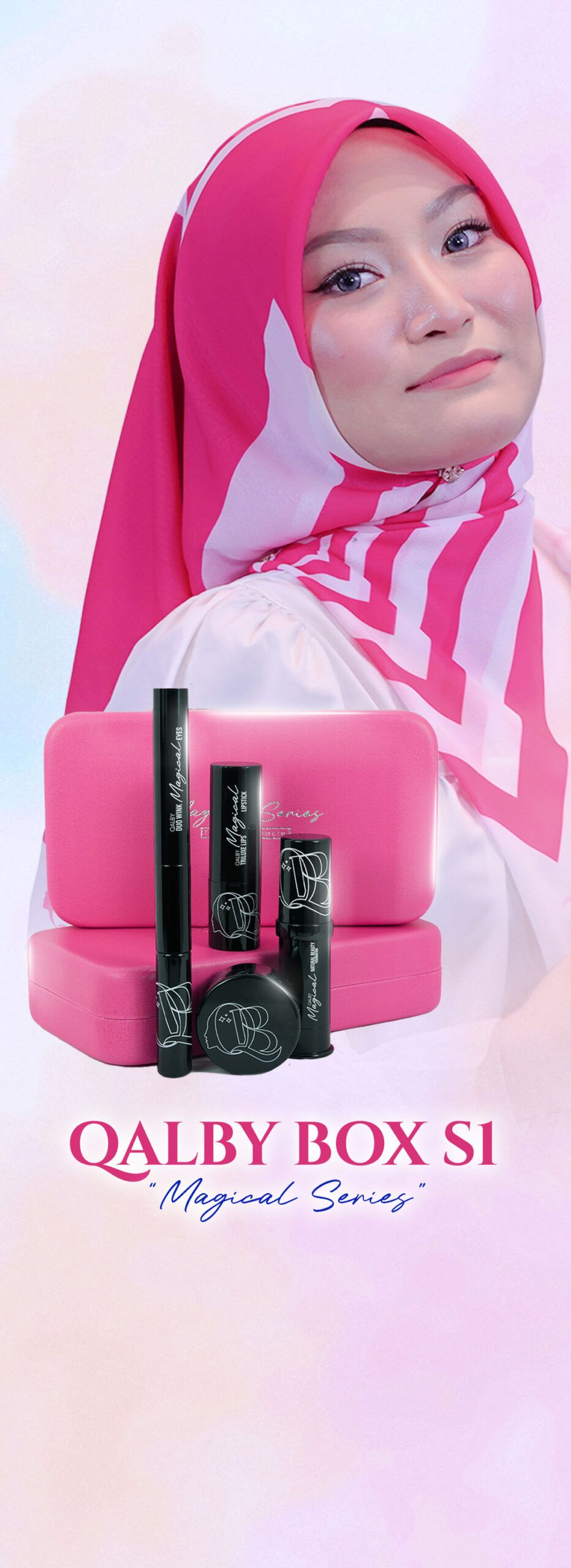 Qalby Makeup Box – Make-up cepat, solusi terbaik untuk wanita on-the-go! Dicipta dengan magical effect untuk look natural beauty dalam sekelip mata. Saiz comel macam smartphone, mudah simpan dan senang bawa ke mana-mana. Tampil stunning & professional setiap masa!